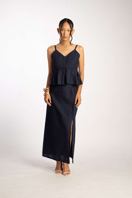 Peplum Top - Navy Blue